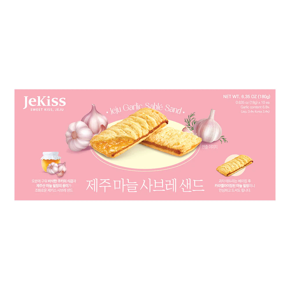 Korean-style sable sandwich cookies with a garlic flavored cream filling